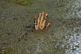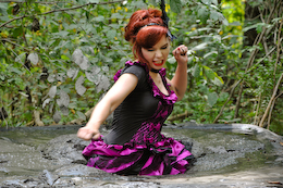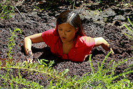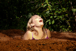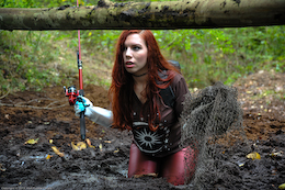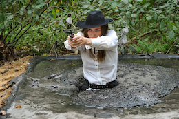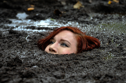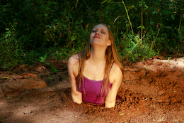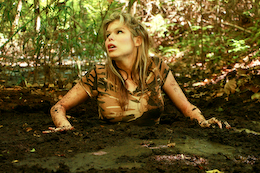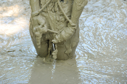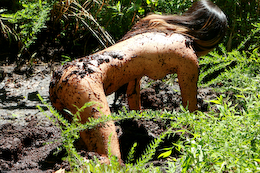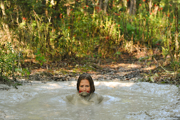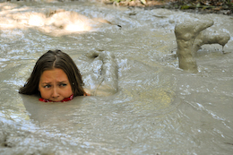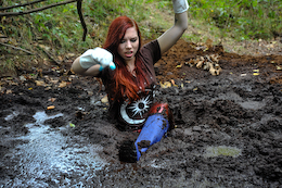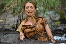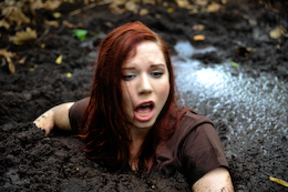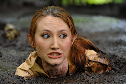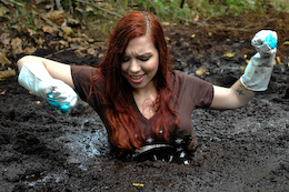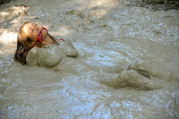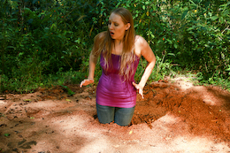 She does, and gets covered with slippery mud, forcing her to wiggle