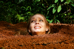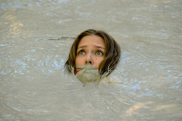 is bound and gagged and ordered to jump into a pit of liquid clay.