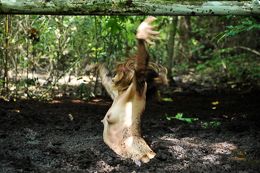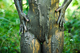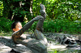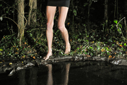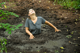 is forced into the bog, naked, by an unseen antagonist, and turns to