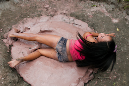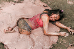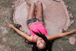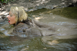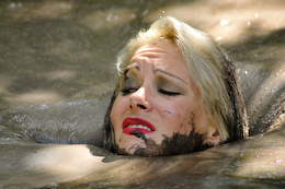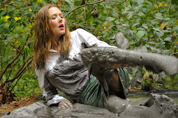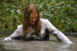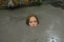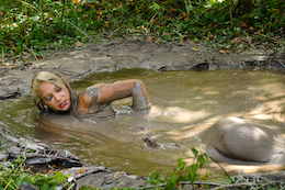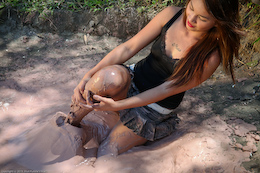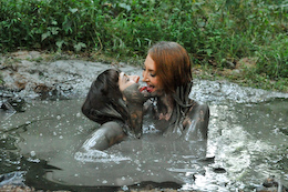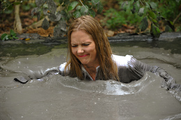 three gals sink straight into the goo one by one, with their hands