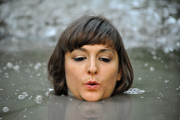 time. The last time in, she sinks to her chest, looking great in the
