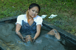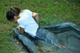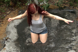challenge to be had. So she steps in and sinks deep. And thus, the