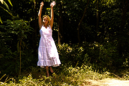 is a wood nymph out for a casual stroll in the woods, accompanied by