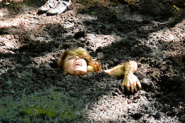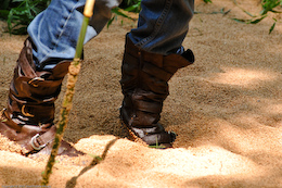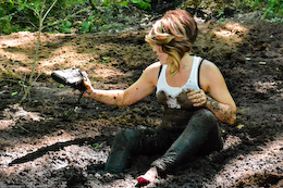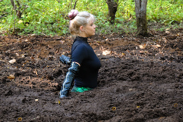 at the edge. The stuff is like glue. Down and down she goes. There's