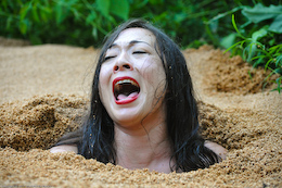 fast and sinking steadily. Her fear rises as her body sinks deeper.