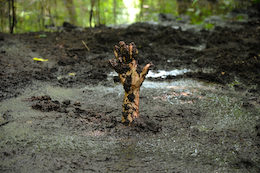 is out to sinking in a bog or quicksand, or whatever she can find.