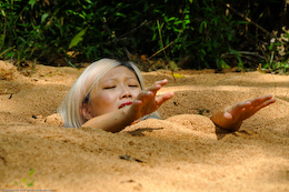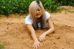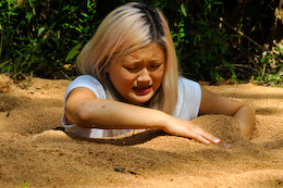up to a patch of quicksand and pushes her in! We wanted to try out
