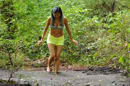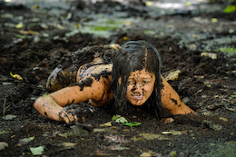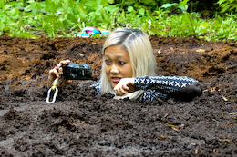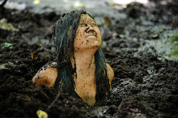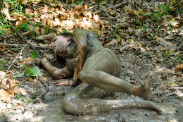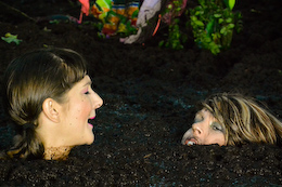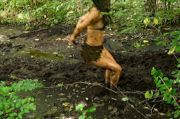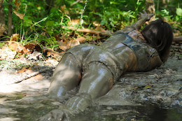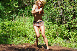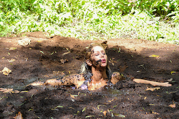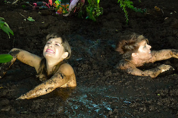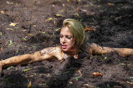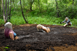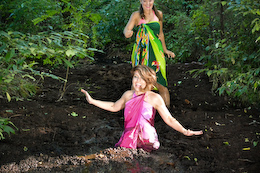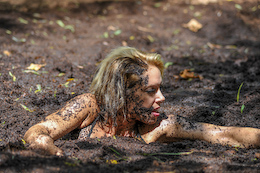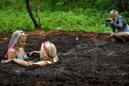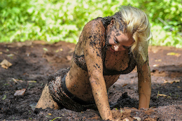 bikinis off as they take turns getting pushed into the mire. But one