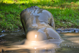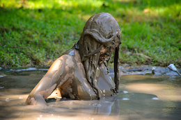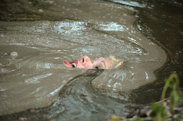 the slippery mud. |