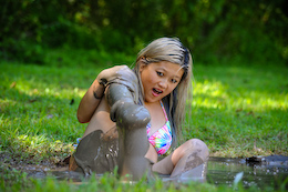 Oops. In she goes again! But this time she finds the deepest part of