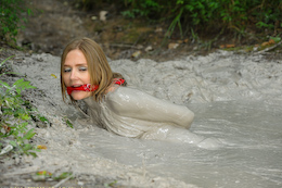 sinking in the stuff and getting her body covered in goo?