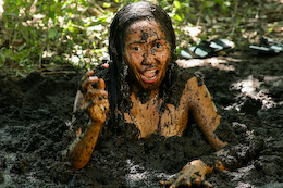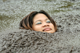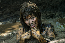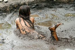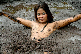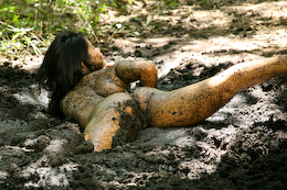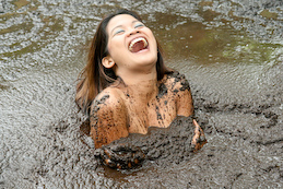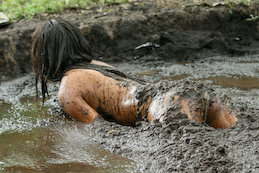 elements to her pleasure - mud and peaty mess! Joan walks into this