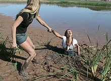 hopelessly stuck and needs two guys to pull her free!