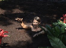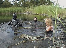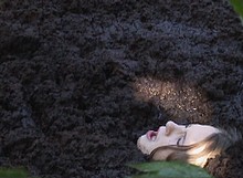 She tries to pull the 'victim' out of the quicksand, but it turns