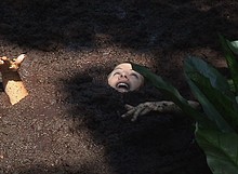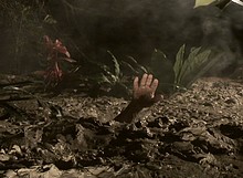 Lena then comes across a hand sticking out of a mist shrouded mire.
