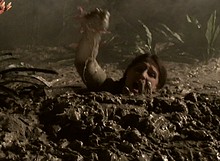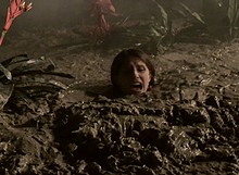 It grabs her and starts to pull her into the muck. What follows is