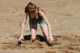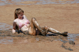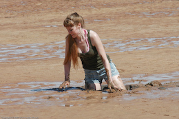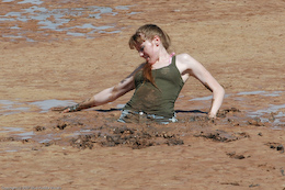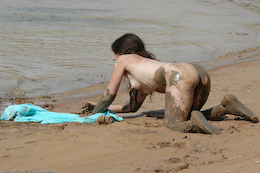 struggle with a 'tar baby' beach. Each attempt to free herself just