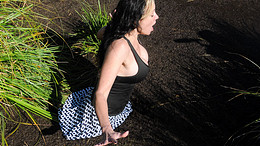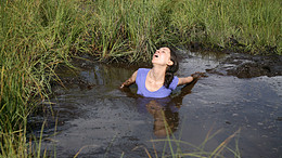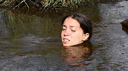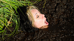 She sinks in up to her hips, and then slowly sinks to her chin as